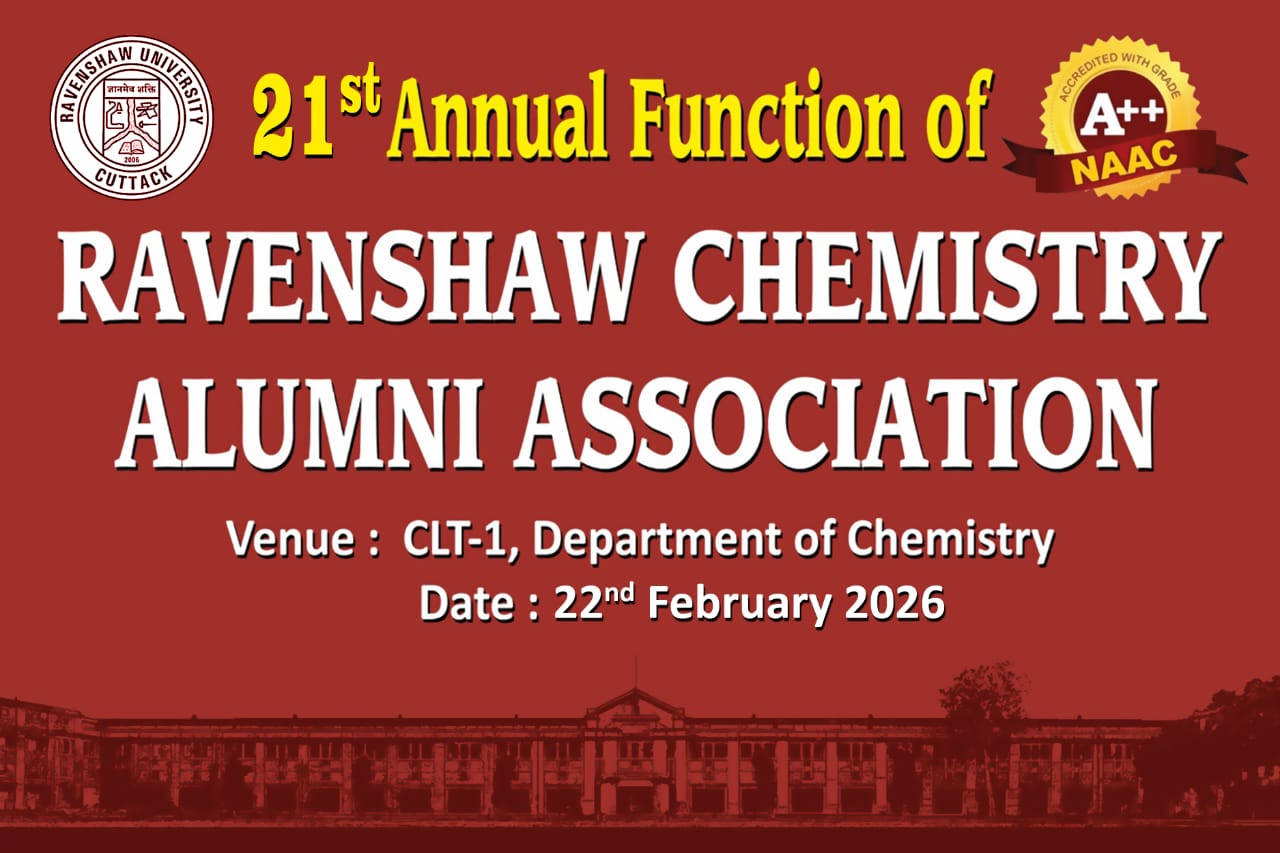 In the early twentieth century, as modern branches of chemical science were evolving, a few visionary academicians of Odisha made a humble beginning by establishing a separate Department of Chemistry at the then Ravenshaw College. Prof. Atul Chandra Ganguli was the first head of the Department. The teaching was limited to intermediate level for quite sometime until the College moved to its present location and the Department of Chemistry transformed into a full-fledged department around 1922.